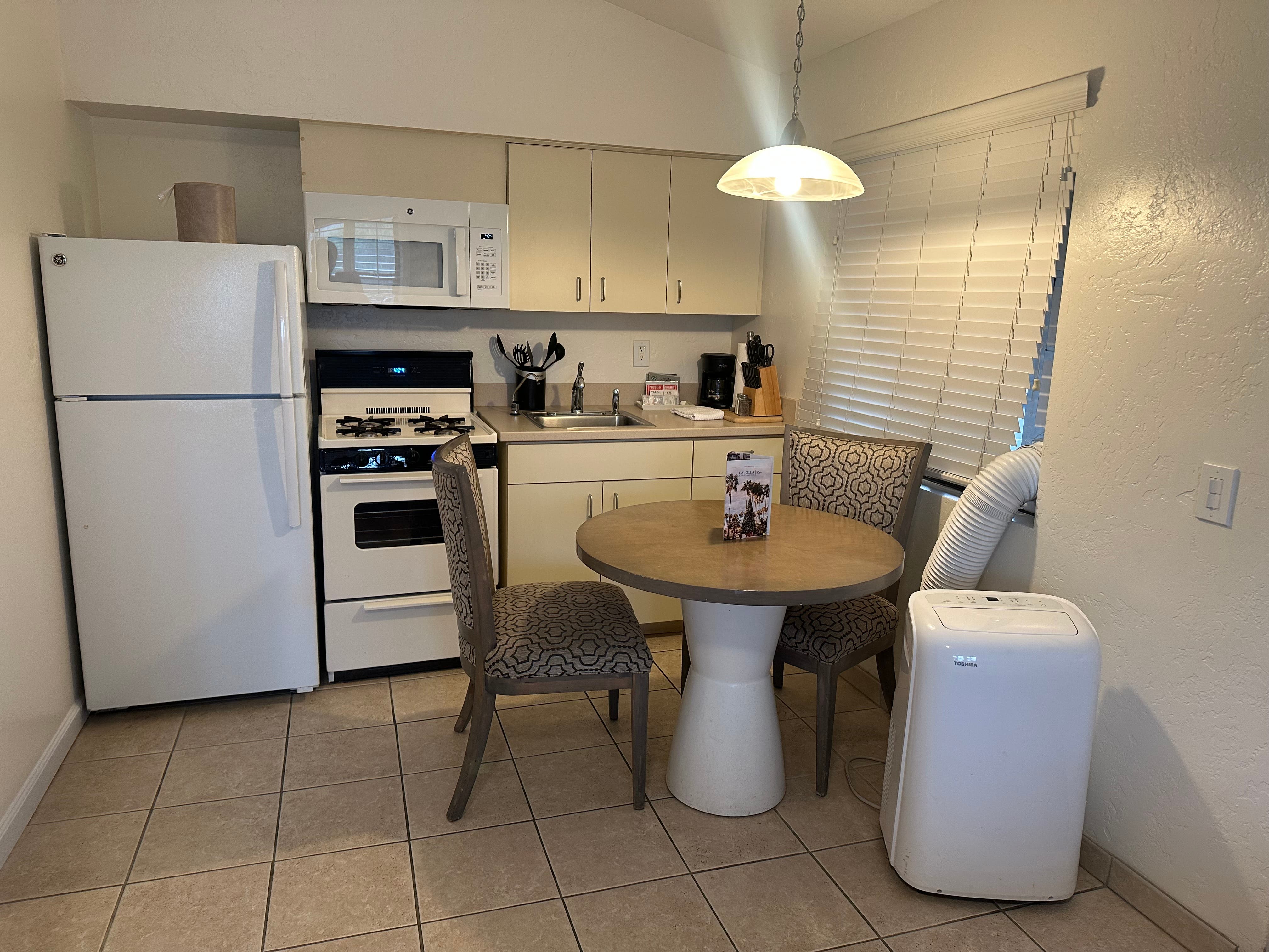 Our room was clean, comfortable and thoughtfully updated, though a bit tight for a family of five. The cozy space featured two double beds, a bathroom and a convenient kitchenette.