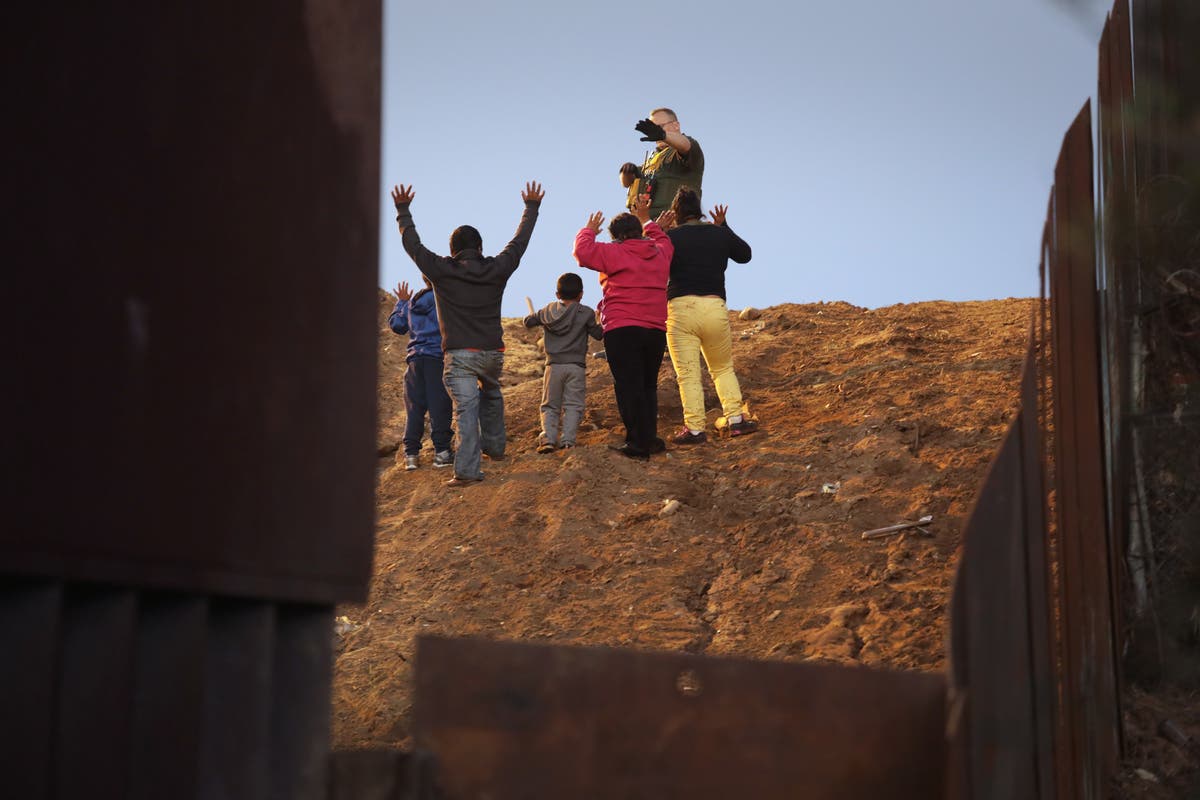 Photo: Members of the migrant caravan turn themselves in to a U.S. Border Patrol agent after climbing over the U.S.-Mexico border fence on December 3, 2018 while crossing into San Diego, CA from Tijuana, Mexico. Many had planned to request political asylum in the United States after traveling more than 6 weeks from Central America. (Photo by John Moore/Getty Images)