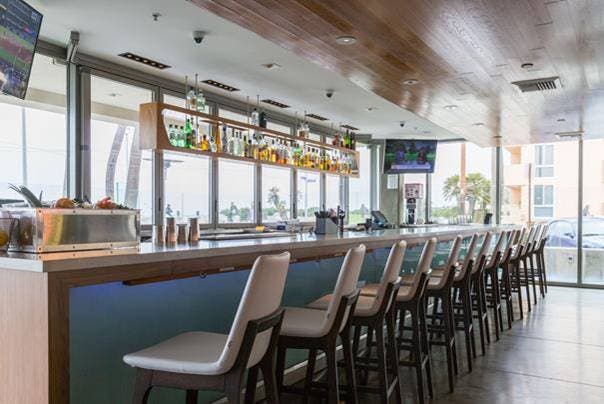 Enjoy ocean views and the game from a seat at the laid-back bar at JRDN in Pacific Beach. Check out the menu here.