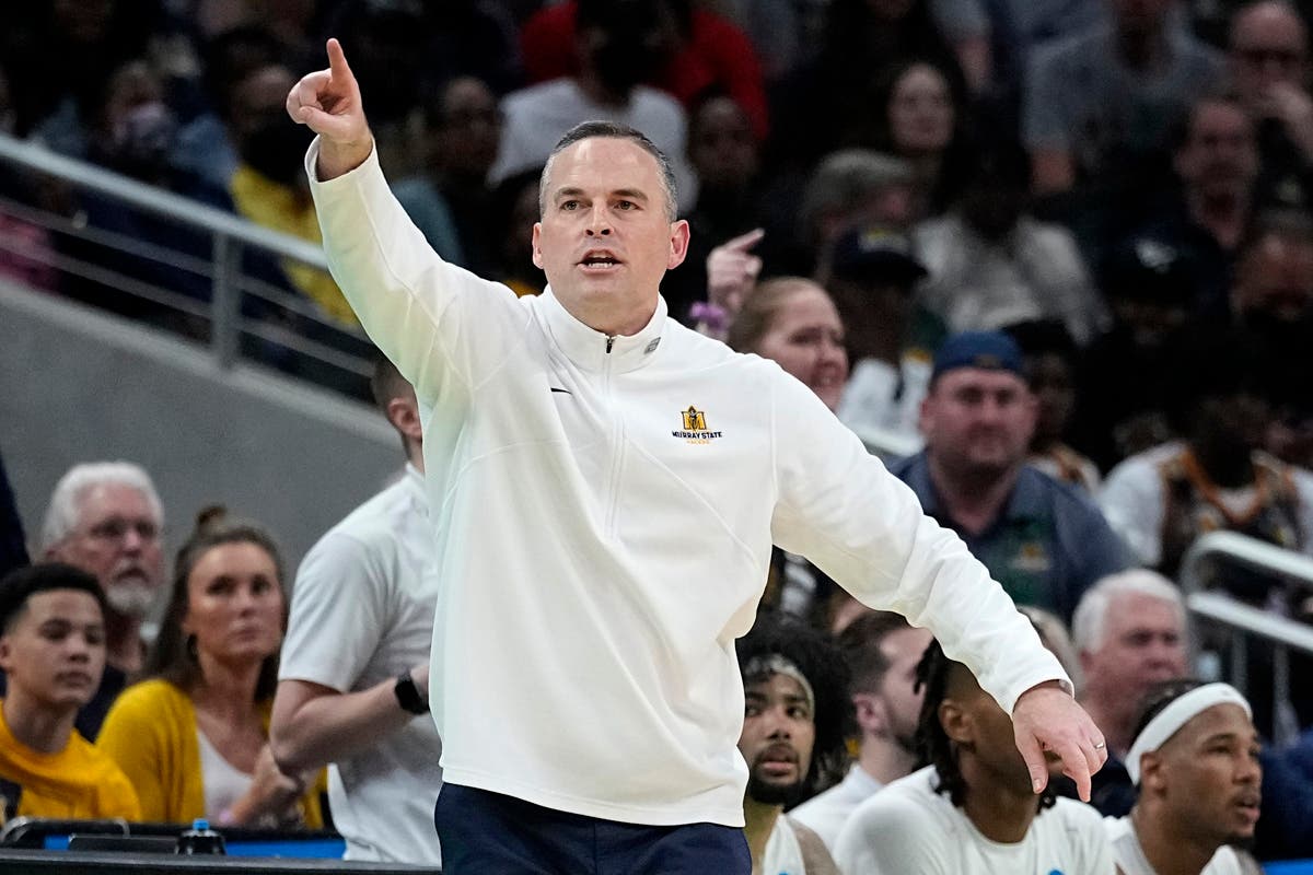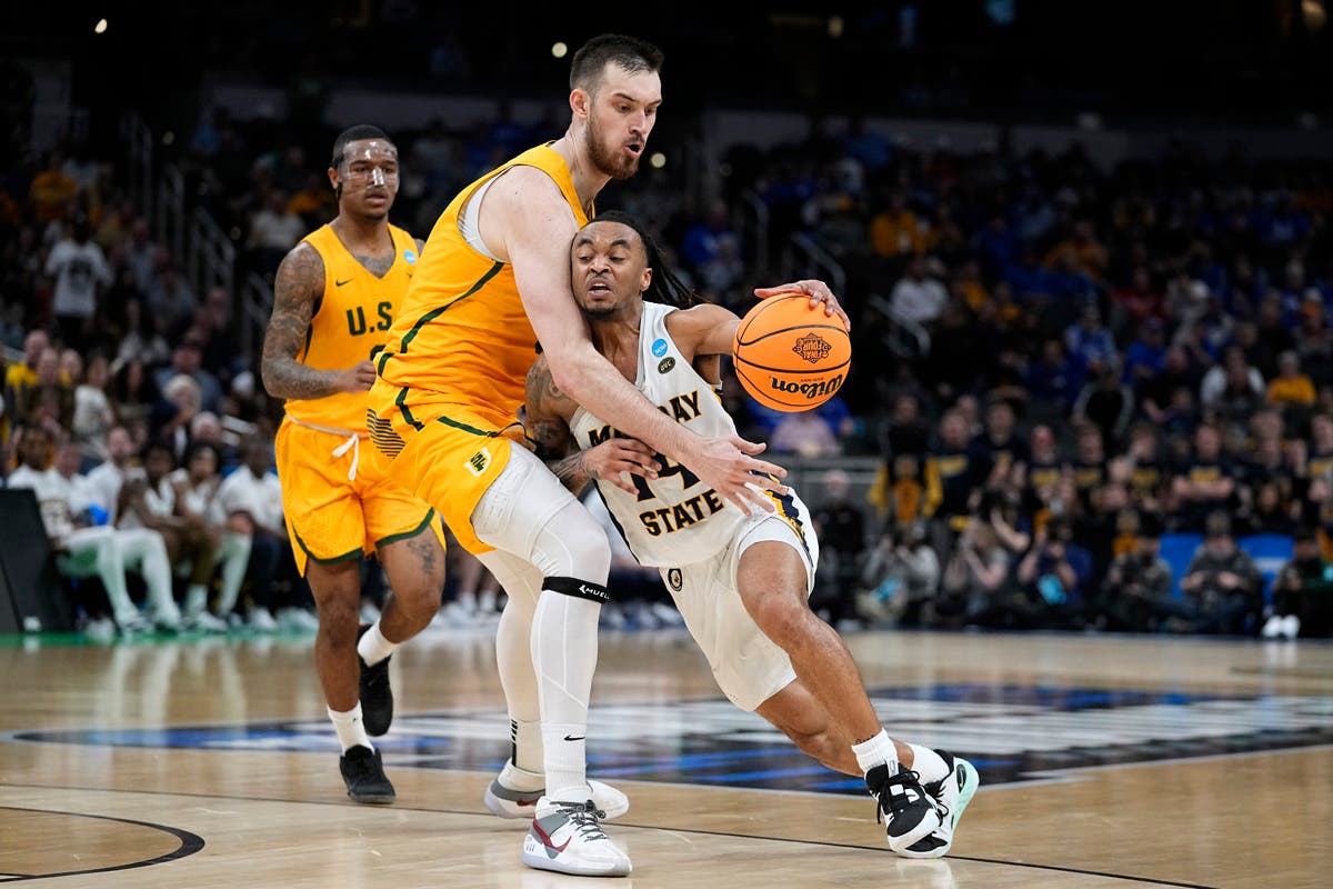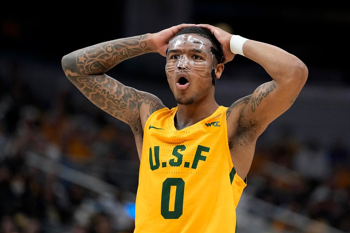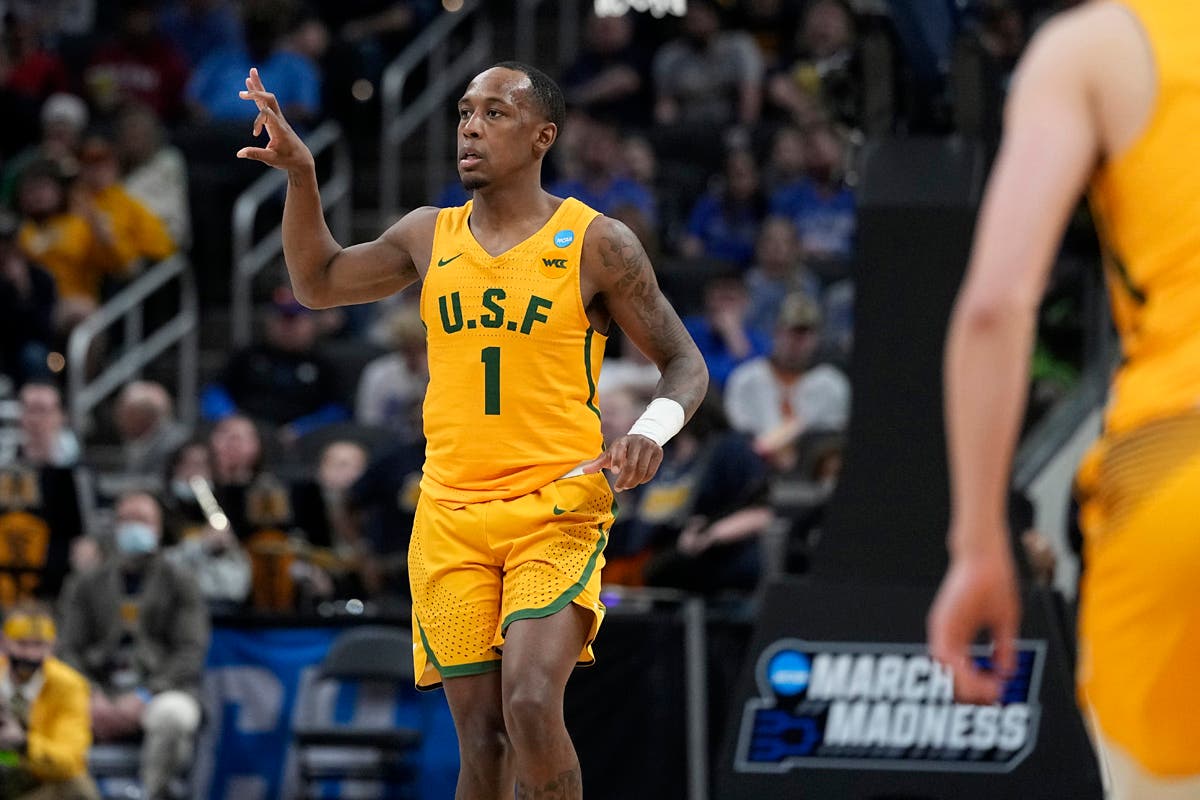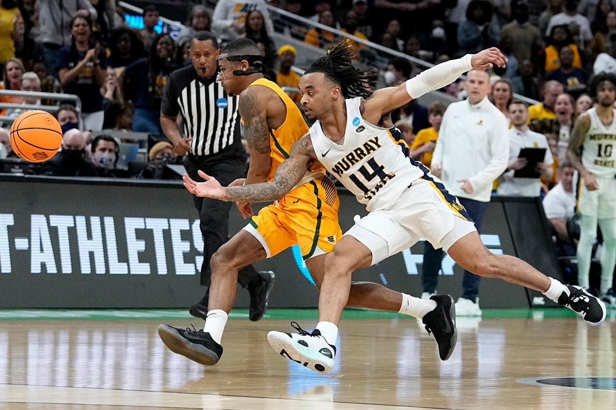 San Francisco forward Patrick Tape, right, tries to steal the ball from Murray State forward KJ Williams (0) during the second half of the game. (AP Photo/Darron Cummings)San Francisco guard Jamaree Bouyea celebrates after making a 3-point basket during the second half of the game. (AP Photo/Darron Cummings)San Francisco guard Jamaree Bouyea (1) shoots over Murray State guard Trae Hannibal (2) during the second half of the game. (AP Photo/Darron Cummings)San Francisco forward Patrick Tape (11) blocks a shot by Murray State guard Trae Hannibal (2) during the first half of the game. (AP Photo/Darron Cummings)Murray State guard Trae Hannibal catches a pass ahead of San Francisco guard Julian Rishwain, left. (AP Photo/Darron Cummings)Murray State guard Justice Hill (14) fights for a loose ball with San Francisco guard Khalil Shabazz, left. (AP Photo/Darron Cummings)Murray State head coach Matt McMahon directs his team during the first half of the game. (AP Photo/Darron Cummings)San Francisco guard Khalil Shabazz reacts after being called for a foul during the first half of the game.. (AP Photo/Darron Cummings)Murray State forward Nicholas McMullen (32) drives to the basket between San Francisco center Volodymyr Markovetskyy, left, and guard Julian Rishwain (2) during the first half of the game. (AP Photo/Darron Cummings)Murray State guard Justice Hill (14) is fouled by San Francisco center Volodymyr Markovetskyy, left, during the first half of the game. (AP Photo/Darron Cummings)Murray State guard DaQuan Smith, center, drives to the basket ahead of San Francisco guard Jamaree Bouyea (1) during the first half of the game. (AP Photo/Darron Cummings)