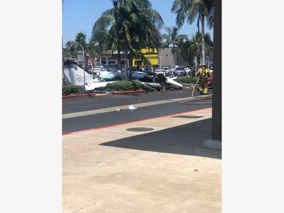 No one was hurt on the ground as the plane clipped an unoccupied car, but "fortunately, that person was inside the store shopping at the time of impact," Orange County Fire Authority Capt. Tony Bommarito said at a news conference Sunday afternoon.