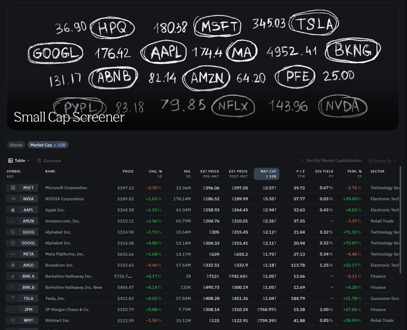 - TakeProfit Screener — A multi-asset filtering engine for real-time market discovery.