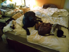 Being forced to move out of this apartment complex half a year later, we could not find an apartment that would accept a large dog – at this point, it would have been very convenient and cost-saving to give Paddy up at a shelter, a lab rescue or find a new owner; this was not an option for us, because Paddy, just like our cats, was family to us – not just property you can discard and then forget about. Thus, the only option left to us was storing all of our belongings and living in motels for 1½ year. These were not comfortable circumstances, and all of our savings were consumed due to this living arrangement. Yet, Paddy adjusted very well - he enjoyed sitting with our cats on the bed, watching TV; he particularly loved his walks on the trail alongside the river by the Red Roof Inn, Burlingame, watching the ducks and meeting other dogs. Paddy had no incentive to run away, and he didn’t. Things turned dark when we relocated to Oakland, because I was transferring to UC Berkeley on a scholarship. We picked out an apartment complex, that while run down and anything but fancy, seemed like a good fit for us because it was dog-friendly, with two large dogs roaming the yard freely, and we were assured Paddy could do the same as long as he got along with the other dogs; not a problem, considering Paddy’s loving and friendly nature towards other animals. This arrangement worked well, until the dog owners moved out; suddenly the owner started advertising the apartments as “no pets allowed” units. In addition, we started experiencing issues with lack of heating, and growth of mold, the extent to which we did not realize until a couple of days into winter break, when we discovered that hundreds of books and other items we had stored in bookcases on the wall had been damaged or destroyed by the mold. Things started to become very hectic in our household, as we were trying to do damage control with our belongings, spending sleepless nights, cleaning and trying to pack them into boxes, and trying to keep our pets away from the mold.