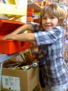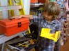 Seven-year-old Simon Dauth said he likes helicopters and trains the best. With his own portable toolboxes, he builds a lot using balsa wood and spends several hours at a time on a hobby project.