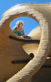 I, meanwhile, enjoyed playing “The Visible Pinball Machine,” which showed the machine’s innards. And all of us marveled at “Gyroid,” an outdoor climbing maze Hannah crawled through and atop while we watched.
