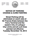 According to an announcement posted on the city site November 15, "The results ... have concluded that the only option available to ensure a safe stopping sight distance is to enforce no-parking along ... Sir Francis Drake Blvd."