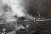 A barbecue at an encampment likely sparked the blaze, authorities said.