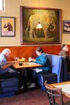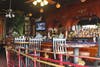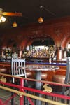 The restaurant is now twice in size and includes a bar that is a 1925 mahogany Brunswick from the San Francisco Cliff House.