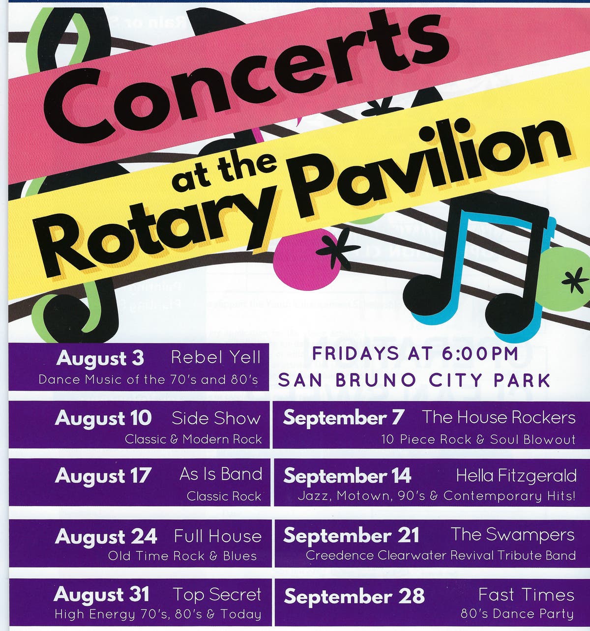 9 consecutive Friday Nights at 6:00 p.m. Aug 3 thru Sept 28 at Rotary Pavilion - FREE