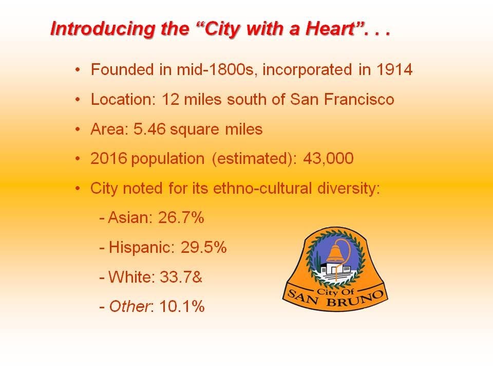 It starts with the history of San Bruno and how San Bruno grew and how in the past few years the City of San Bruno updated its vision and plans to accomplish them.