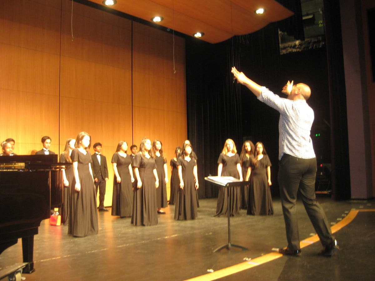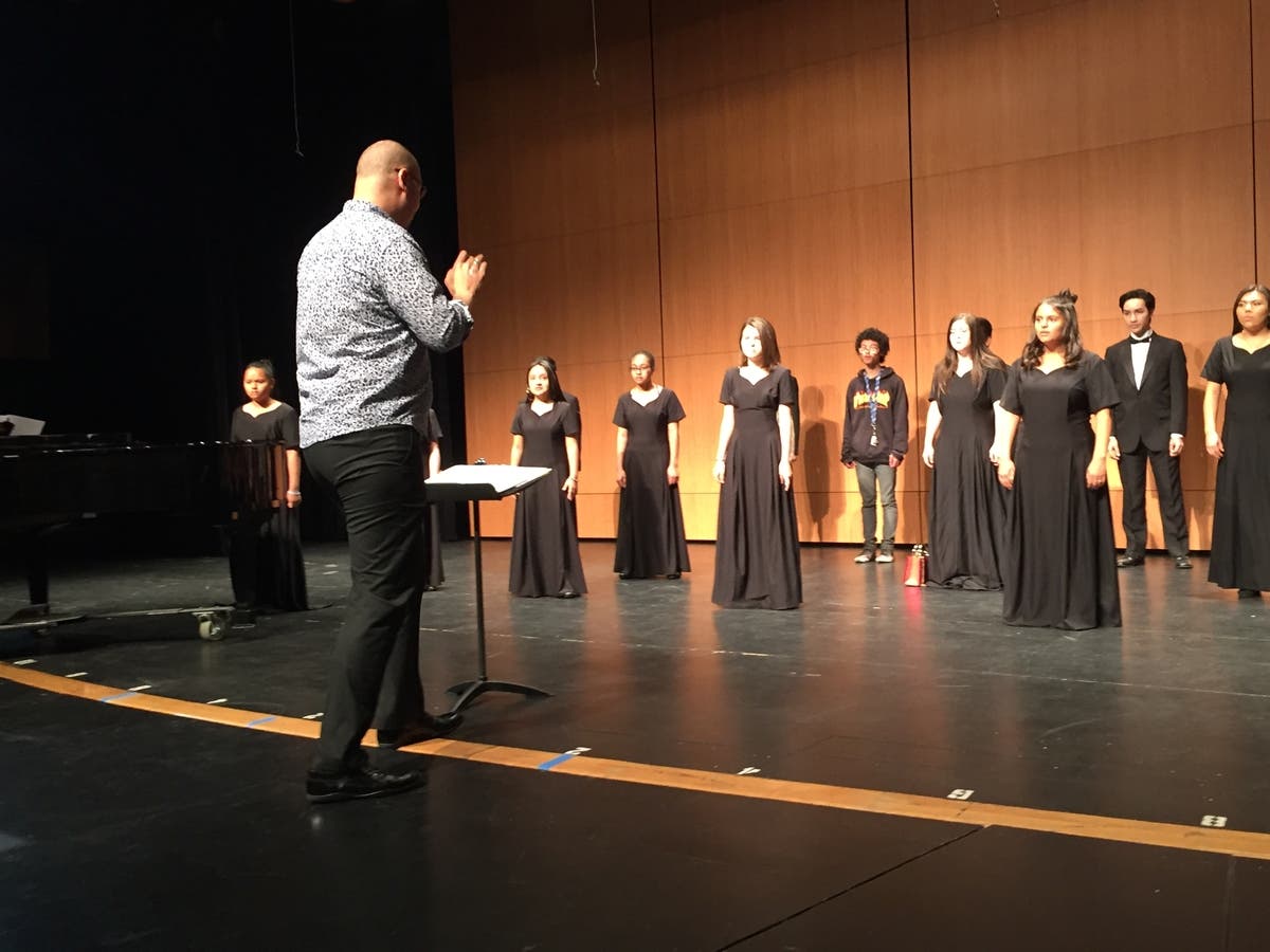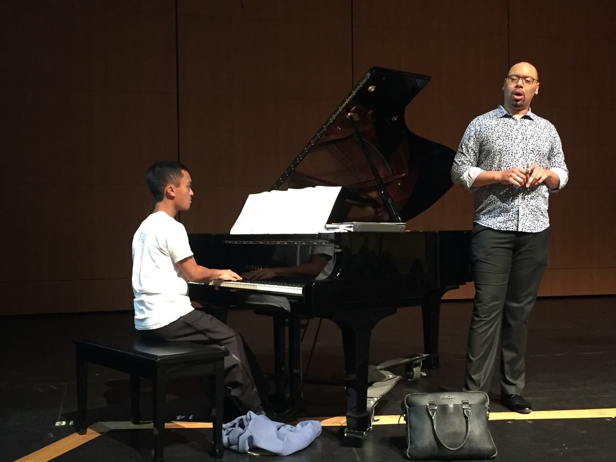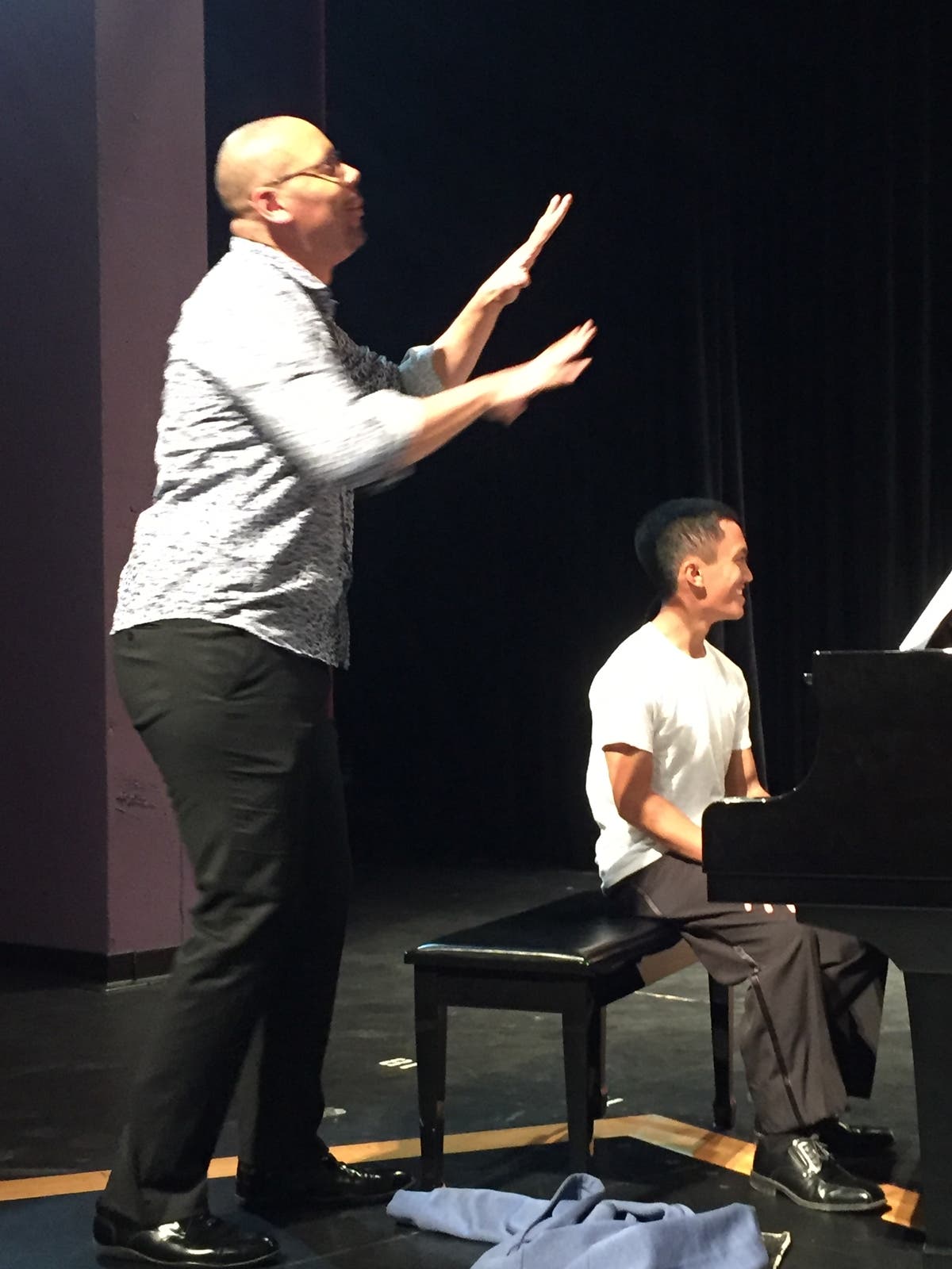 Every performance is better with a practice. Kevin Thompson assists with the practice with CAP singers