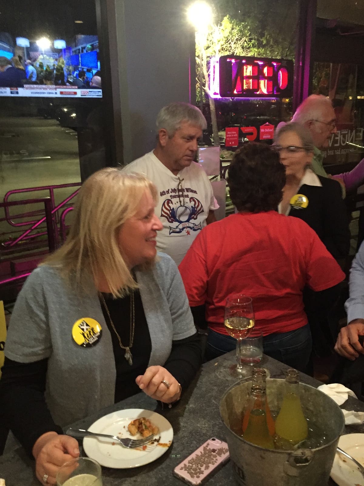 The Campaign Committee celebrated with a thank you gathering at Nueve in Bayhill to acknowledge the breadth of support from so many individuals. On hand to share in the accomplishment were San Bruno City Council Members Michael Salazar and Marty Medina, Mayor Rico Medina and former Mayors Jim Ruane and Larry Franzella. Supervisor Dave Pine and Elizabeth McManus, Deputy Superintendent San Mateo Union High School District, who were key volunteers on the campaign, were in attendance along with Dr. Kevin Skelly, superintendent of the high school district. Alumni of the district, parents, and other community leaders were on hand to await the election results.