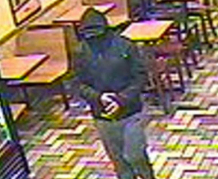 He was wearing a black hooded sweatshirt, a black baseball cap, a dark piece of cloth covering the lower part of face, gray pants and black shoes, according to police.