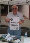 inflatable beach balls. For those who stayed long enough after they collect their freebies, they also got an earful of an exciting project to introduce The Walking School Bus Program to San Bruno. (Look it up online!) The committee, represented at the Farmers Market by committee members George Yang, Randy Brase, and David Nigel, eagerly invites citizens and residents of San Bruno to participate in their meetings, which convene 6 p.m. every second Wednesday at City Hall. Pictured is committee member David Nigel. For information on their new program “The Walking School Bus”, contact Laura Russell - lrussel@sanbruno.ca.gov or 650-616-7074