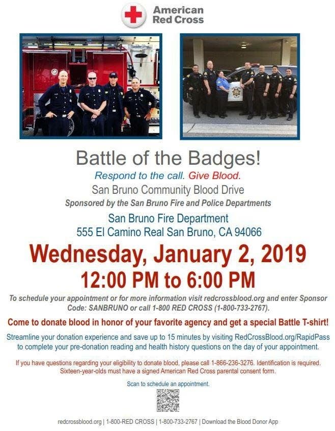 Will YOU Donate Blood For Police or Fire Dept Jan 2 2019 noon - 6