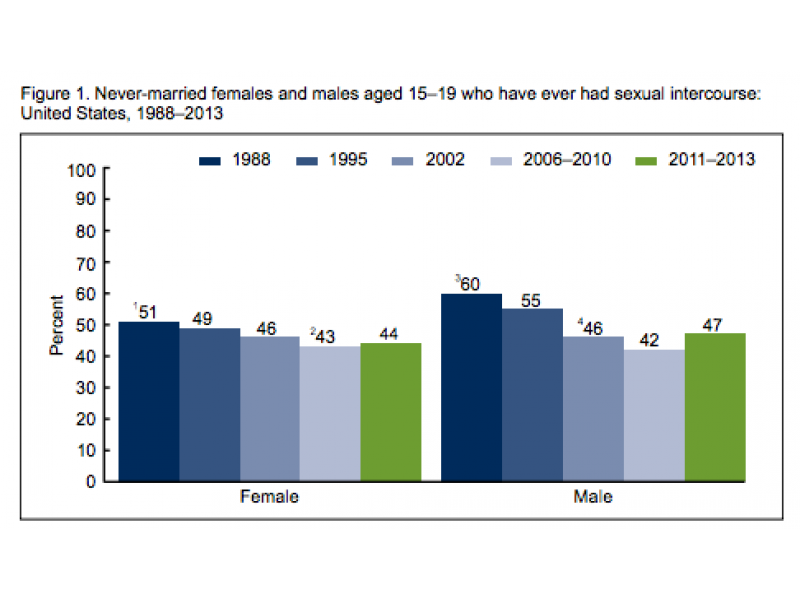 In 1988, 51 percent of females in that age group were sexually active, compared to 44 percent in 2011-2013, the period in which the most recent statistics are available. And males? The percentage has dropped from 1988 by 13 percentage points, from 60 to 47.