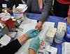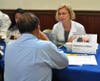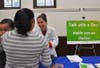 At one of the table stations marked with a sign, “Pregùntele a un Mëdico”, or “ask a doctor.” Dr. Susan Thorne, a physician in the Kaiser Permanente Redwood City’s Hispanic Module spoke in Spanish to a visitor who was having his blood pressure checked.