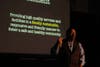 Speaking from a headset and in front of 150 person audience at the Hiller Aviation Museum and Institute, Ahmad bounced from slide to slide in a digital presentation that heralded San Carlos' efforts in combating a growing deficit as cutting edge, innovative and often unpopular, especially with the institutions that city politicians have attacked head-on.