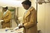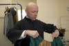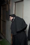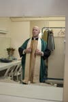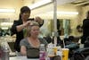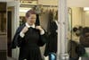 Actors put on makeup and perform facial stretches leading up to one of the performances of the play "Doubt," recently made into a critically acclaimed film.
