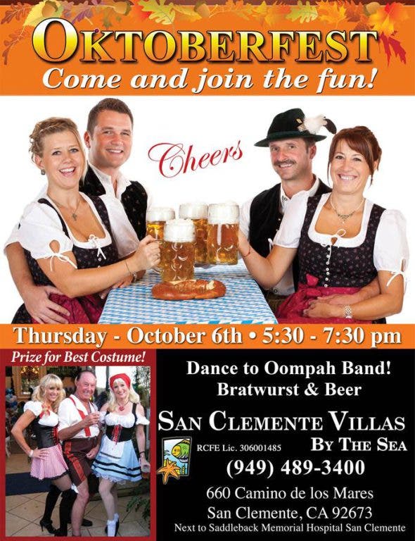 San Clemente Villas by the Sea, a luxury senior living and retirement housing community, invites area residents to a gala Oktoberfest celebration Thursday, October 6th, 5pm – 7pm with live music, food, dance, refreshments, and interfacing with members of the City Council and Chamber of Commerce. The event serves as the Chamber’s October Monthly Mixer.