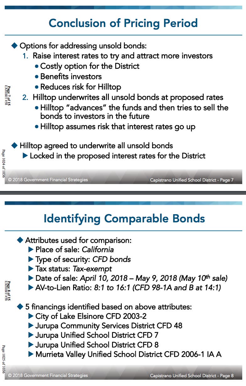 (2) Hilltop underwrites all unsold bonds- Hilltop assumes risk that interest rates will go up.