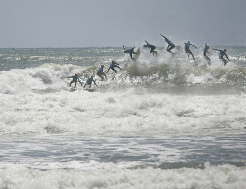 This picture was edited from 10 sequential photographs in Photoshop to create one surfing sequence.