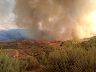 As they watched, the fire came closer marching up hill in an eerie glow of orange and red. Though the sun had not yet set, the sky was dark and smoke-filled.