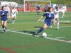 Coxe attempted eight of the team’s 30 shots, two on goal. The Lady Tritons peppered Luke with 12 shots on goal. On one shot in particular, Coxe’s from about 30 yards, appeared headed for the top part of the net, but Luke tipped it up and away at the last moment, drawing a laugh from both players. Coxe hit the crossbar once, as did Janae Cousineau, who finished with five shot attempts and three shots on goal.