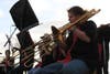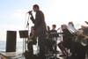 Tenor Sax, trombones and smooth electric bass guitar sounds could be heard amid the crashing of the waves and the roar of the trains.
