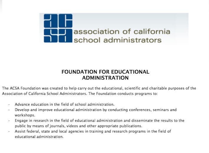 ACSA is the Association of California School Administrators.