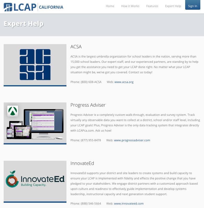 The Association of California School Administrators (ACSA) assembled a team of education experts to form LCAP California. The "Experts" included: