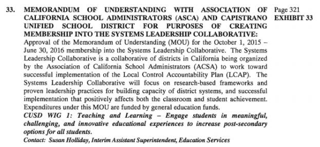 In other words, CUSD purchased services from a business owned by a Trustee, using a contract disguised as an MOU with an innocuous sounding association.