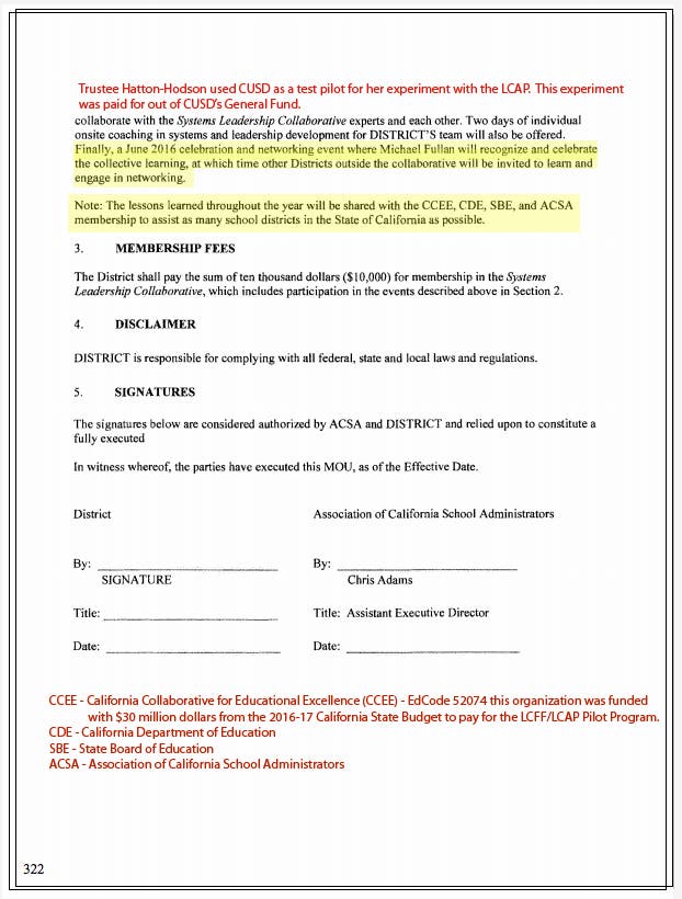 - CUSD paid the ACSA $10,000 for membership in Systems Leadership Collaborative - Trustee Hatton-Hodsons company.