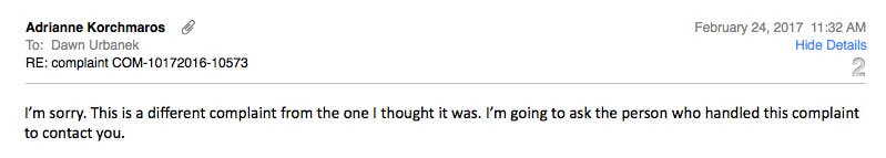 February 24, 2017 E-mail from Adrianne Korchmaros FPPC at 11:32