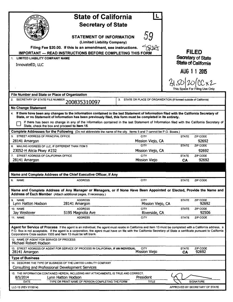 3. InnovateEd (Trustee Lynn Hatton-Hodson's Company)