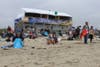 San Clemente local Tanner Gudauskas, one of only two Americans in the quarterfinals, first faced Brazilian Heitor Alves. Even with the lack of surf, the goofy footers (surfers who lead with their right feet) still managed to create excitement for the crowd throughout the 25-minute heats.