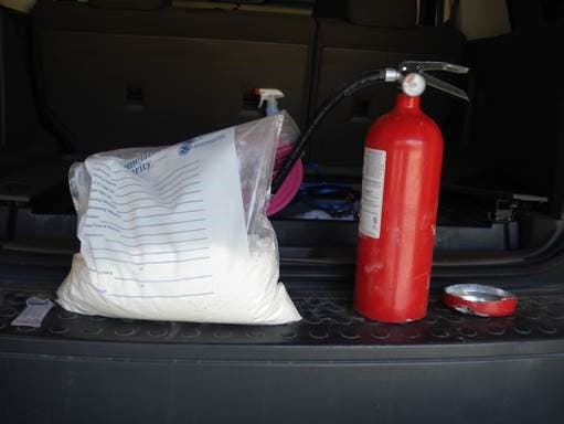 Upon closer inspection of the vehicle, agents noticed that the vehicle had an unusually large and heavy fire extinguisher in the back.