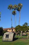 After that, we all headed to bed. From a neighboring tent, I heard the father reading a chapter from a book he and his sons are enjoying. Some hearty souls just rolled out their sleeping bags and used the stars as their roof! I heard a little low hum of others talking, but for the most part, it was very peaceful. Once the restaurants closed down, it was especially quiet. Although I am used to the hum of the freeway in the background, on the grounds of the Mission, even the freeway could not be heard. With a limit of only 50 people, a few bunnies, a couple fountains full of koi and a cat, I am betting it was much quieter the night we were there than when the Mission was in its heyday.