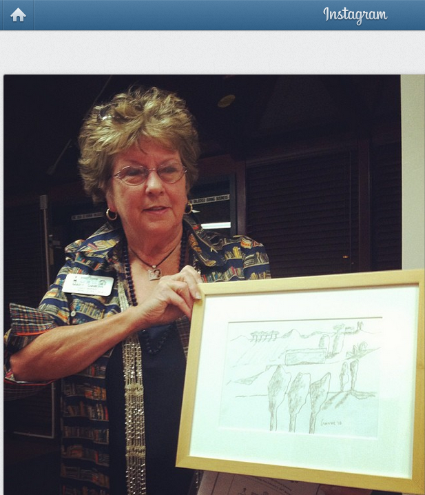 Also to commemorate the anniversary, Graves sent a gift to the library, an original done with graphite on paper from his series, “Remembered Landscapes.” DeMers showed it to the City Council Tuesday night.
