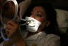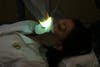 To prepare for the actual teeth whitening, the patient’s lips and gums are fully covered to prevent exposure to the Zoom gel. Once the gel is on all teeth, special lighting is applied for 15 minutes to removes stains and discoloration. The gel and light is reapplied two more times with 15-minute durations, for a total of 45 minutes.