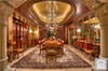 With seven bedrooms, seven bathrooms, and another seven “half” bathrooms, this is no ordinary place. The interior has incredible finish work with huge columns, marble, carved wood, iron, chandeliers and murals on the ceilings. Beyond the standard rooms and gourmet kitchen, there’s a movie theater, wine cellar and more than 13,000 square feet of living area.