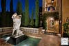 The house is probably best known for its garage. Designed to hold some 10-plus cars, which doesn’t sound too out of the ordinary until you see it and realize that when you pull out the cars, it doubles as a ballroom, complete with marble floors, gold ceilings, crystal chandeliers, a bar and men’s and woman’s restrooms with multiple stalls! The ultimate venue for a party or even a wedding reception. And wait, if you’re getting married, no need to book a church; you can say your vows in the small chapel which is just outside overlooking the golf course. Sweet.