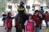 In all, there were over 15 highly trained horses and their handlers participating. Riders and horses were paired together based upon their sizes and temperaments. For safety, two side-walkers flanked each youngster and a leader set the pace as the young riders walked and trotted their horses.