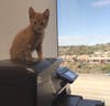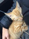 Our volunteer took sweet Hashbrown (Orange Tabby who was found on a highway divider) to work and look at how relaxed he is! He is a lap kitty who loves having a companion, and loves to watch you work from the nearby printer!