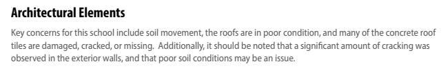 In addition, a recent facilities assessment report (at page 7) indicates there may be structural damage to the building as a result of grading a Toll Road so close to Tesoro High School.