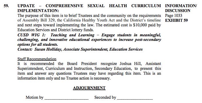 CUSD to Discuss Controversial Sex Ed Curriculum