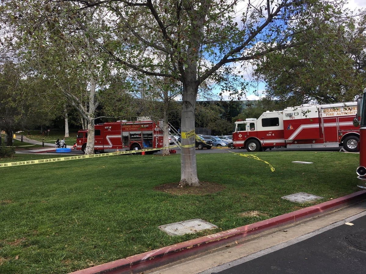 Orange County Fire Authority responded to a gas leak at a San Juan Capistrano laboratory, Friday. Workers evacuated for HazMat team.
