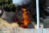 Schuda said the car took maybe 20 seconds to burst into large flames. “By the time I got there, the little fire coming out of where the engine was ignited some of the hill, the bushes. It ultimately got too big. We had to back off.”