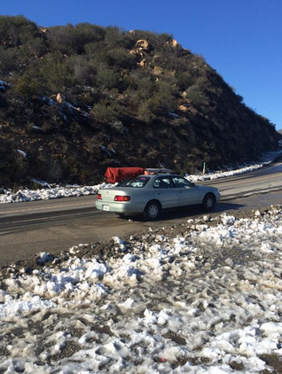 About three dozen vehicles with 40 people in them were stranded on the highway because of the conditions, but were eventually bused out, said CHP spokeswoman Mary Bailey.