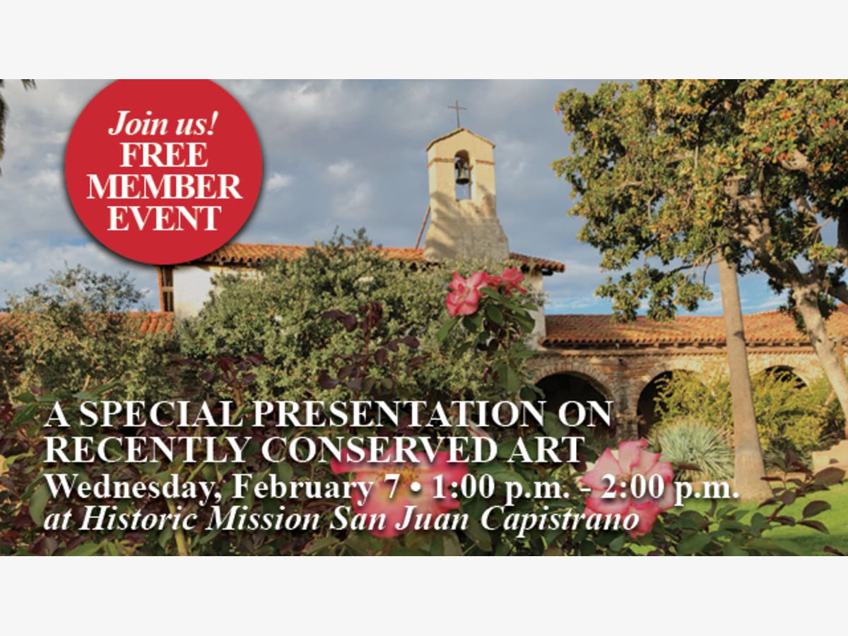 Come to the historic Mission San Juan Capistrano on Wednesday, February 7 in the Soldiers Barracks Gallery and see a selection of recently conserved paintings from the Mission’s permanent collection and learn about the process and meaning of the art and the importance of stewarding it for future generations.